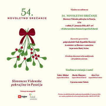54. Novoletno srečanje Slovencev Videnske pokrajine in Posočja08.01.2026Kobarid bo v soboto, 17. januarja, popoldne gostil tradicionalno, že 54. Novoletno srečanje Slovencev Videnske pokrajine in Posočja, ki ga vsako tretjo soboto v januarju pripravljajo tri posoške občine, Upravna enota Tolmin in Posoški razvojni center. Osrednja slovesnost bo ob 17. uri v Kulturnem domu Simona Gregorčiča Kobarid, kjer bo tokratni slavnostni govornik podpredsednik Vlade Republike Slovenije in minister za Slovence v zamejstvu in po svetu Matej Arčon, zaslužnim pa bodo podeljena Gujonova priznanja. Pozdrav iz Benečije bo prinesla priznana kulturna delavka in pesnica Margherita Trusgnach, kulturni program pa bodo oblikovali Ljoba Jenče, Folklorna skupina "Val Resia" in Oktet Simona Gregorčiča Kobarid. Srečanje tradicionalno podpirata tudi Javni sklad za kulturne dejavnosti - OI Tolmin in Zavarovalnica Triglav. -