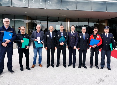 Plaketo Civilne zaščite je prejel Aleksander Vončina, Zlati znak Civilne zaščite pa Damijan Koren – Čoč02.03.2026V Kongresnem centru Brdo pri Kranju je danes potekala osrednja državna slovesnost ob dnevu Civilne zaščite. Dan, ki ga obeležujemo 1. marca, je posvečen vsem pripadnicam in pripadnikom sil za zaščito, reševanje in pomoč, ki s svojim znanjem. izkušnjami in pogumom zagotavljajo varnost državljank in državljanov. Plaketo, ki je drugo najvišje priznanje Civilne zaščite Slovenije je prejel Aleksander Vončina, poveljnik Civilne zaščite Občine Kobarid, Zlati znak Civilne zaščite pa Damijan Koren – Čoč, član Društva Gorske reševalne službe Tolmin. Z današnjo slovesnostjo ob dnevu Civilne zaščite izkazujemo spoštovanje srčnosti, strokovnosti in viziji vsem, ki gradijo sistem varstva pred naravnimi in drugimi nesrečami. Prireditve so se udeležili najvišji predstavniki države, med njimi podpreds -