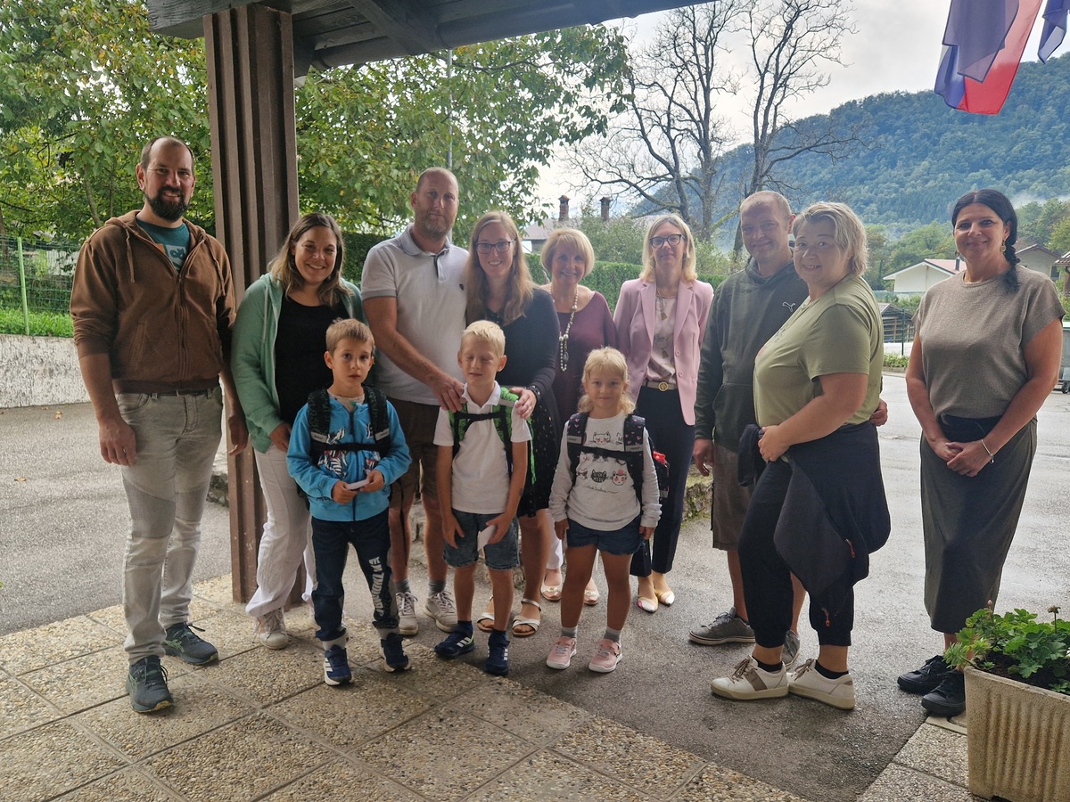 Mlade šolarke in šolarje iz podružnične šole Drežnica in podružnične šole Smast je čez šolski prag poleg učiteljic in staršev pospremila podžupanja Občine Kobarid Urška Miklavič. V Smasteh se jim je pridružil tudi župan.