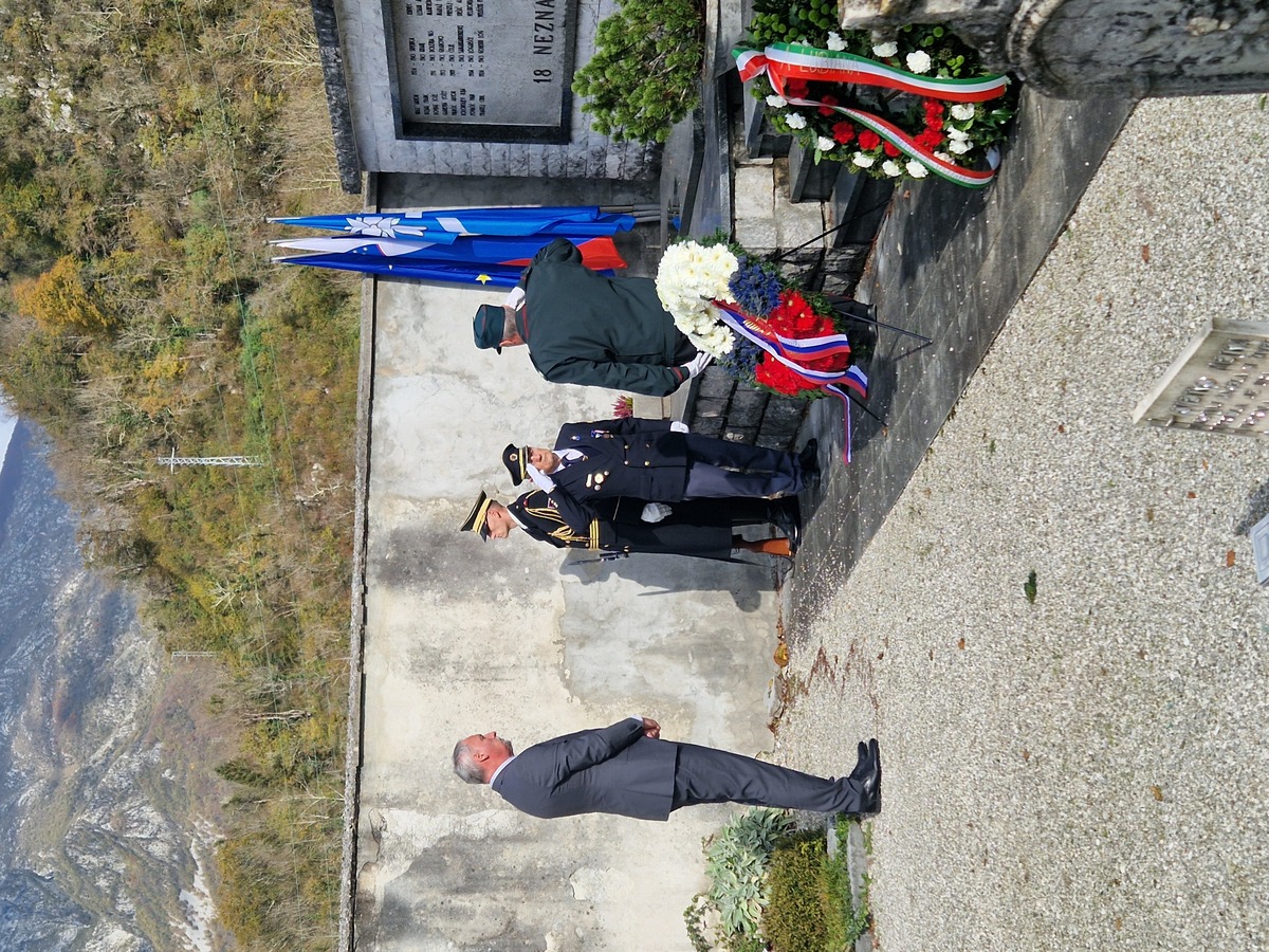 Delegacije so položile vence k italijanski kostnici in k spomeniku borcem NOB na pokopališču v Kobaridu, kjer je zbrane nagovoril Rok Uršič.