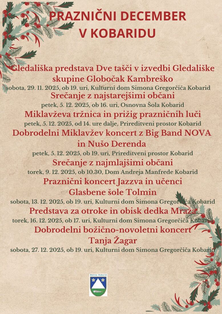 petek, 5. 12. 2025, od 14. ure dalje, Prireditveni prostor Kobarid