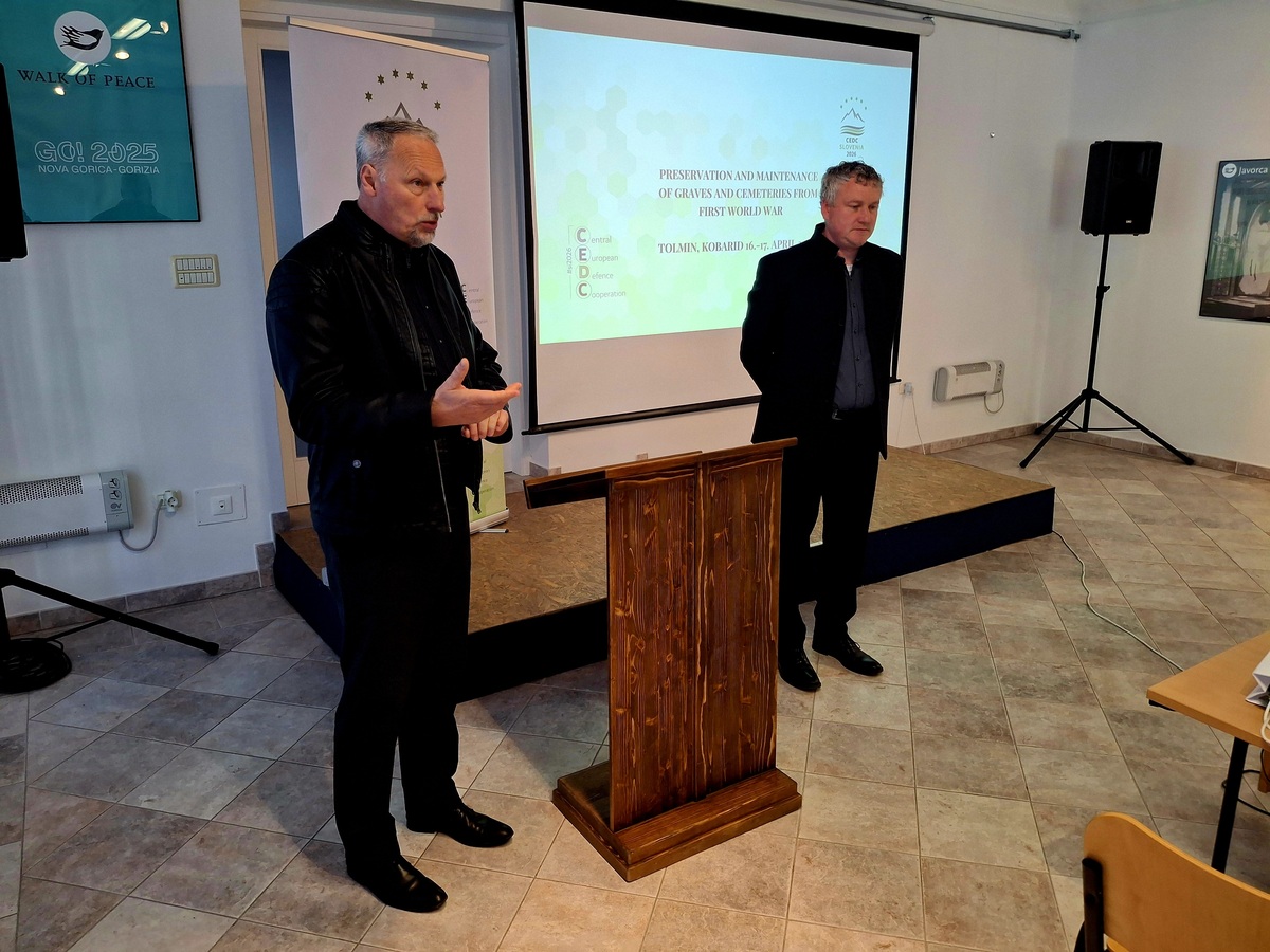 Generalni direktor Direktorata za vojne veterane in vojaško dediščino mag. Matjaž Ravbar je uvodoma predstavil cilje slovenskega predsedovanja Pobudi za obrambno sodelovanje držav Srednje Evrope (angleško Central European Defence Cooperation – CEDC), ki ga je Slovenija prevzela 1. januarja 2026. V nadaljevanju je predstavil delo direktorata, ki od leta 2021 združuje vse naloge s tega področja in deluje pod okriljem Ministrstva za obrambo. Glede na glavno temo strokovnega srečanja je sledila predstavitev dela Sektorja za vojne grobove in grobišča, ki opravlja naloge vzdrževanja in upravljanja vojnih grobov in prikritih vojnih grobišč, vodi register vojnih grobišč in evidenco prikritih vojnih grobišč, vodi posodabljanje informacijske baze vojnih grobišč DEDIVOJ, je podpora Komisiji Vlade RS za reševanje vprašanj prikritih grobišč ter opravlja vse naloge vezane na raziskave in druge posege na vojnih grobiščih. Predstavil je tudi zgodovinski pregled ohranjevanja vojnih grobov in grobišč na tem območju.