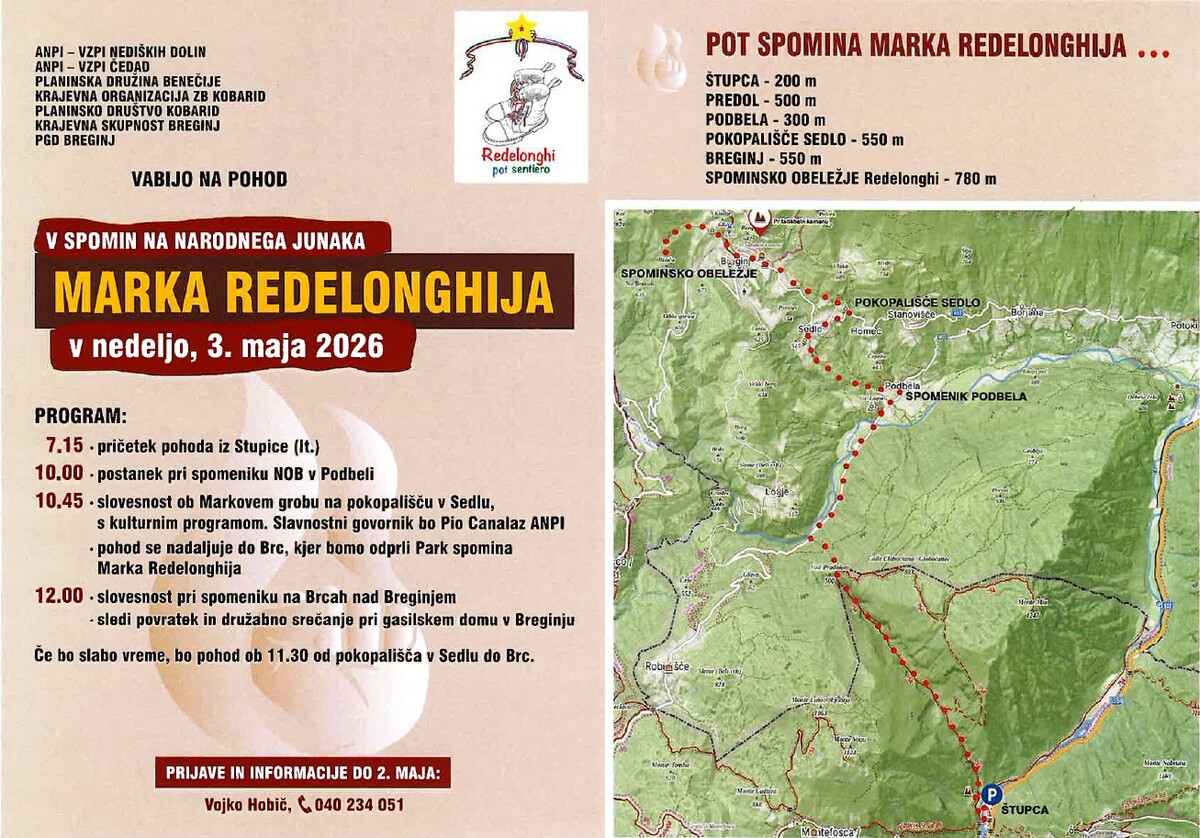 Vabljeni na Pohod v spomin na narodnega junaka Marka Redelonghija, ki bo v nedeljo, 3. maja 2026.