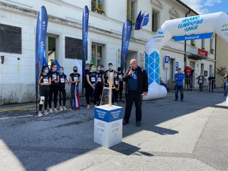 Ob prihodu bakle na Kobariški plac je podžupan Marko Miklavič v družbi podpredsednika OKS-ZŠZ Janeza Sodržnika pozdravil tekače. Izza ograje so si slovensko baklo ogledali osnovnošolci OŠ Simona Gregorčiča Kobarid, ki so zaradi COVID-19 ukrepov baklo pozdravili ob trasi.