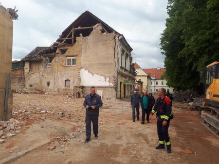 Delegacijo iz Kobarida je sprejel predsednik DVD Petrinja Stanislav Polovine. Zahvalil se je za pomoč, ki bo pripomogla k varnemu opravljanju nalog gasilcev na terenu. Delegacijo je pospremil po mestu, ki je postalo eno samo gradbišče. Podatek iz meseca marca kaže, da je prijavljenih več kot 37.500 poškodb na objektih. Obisk so nadaljevali v domu gasilca Borisa Božička, ki mu potres tudi ni prizanesel. V znak podpore pri obnovi doma mu je Lidija Koren predala donacijo v vrednosti 650 evrov, ki jo je Boris s soprogo prevzel z solzami v očeh in se zahvalil za pomoč.